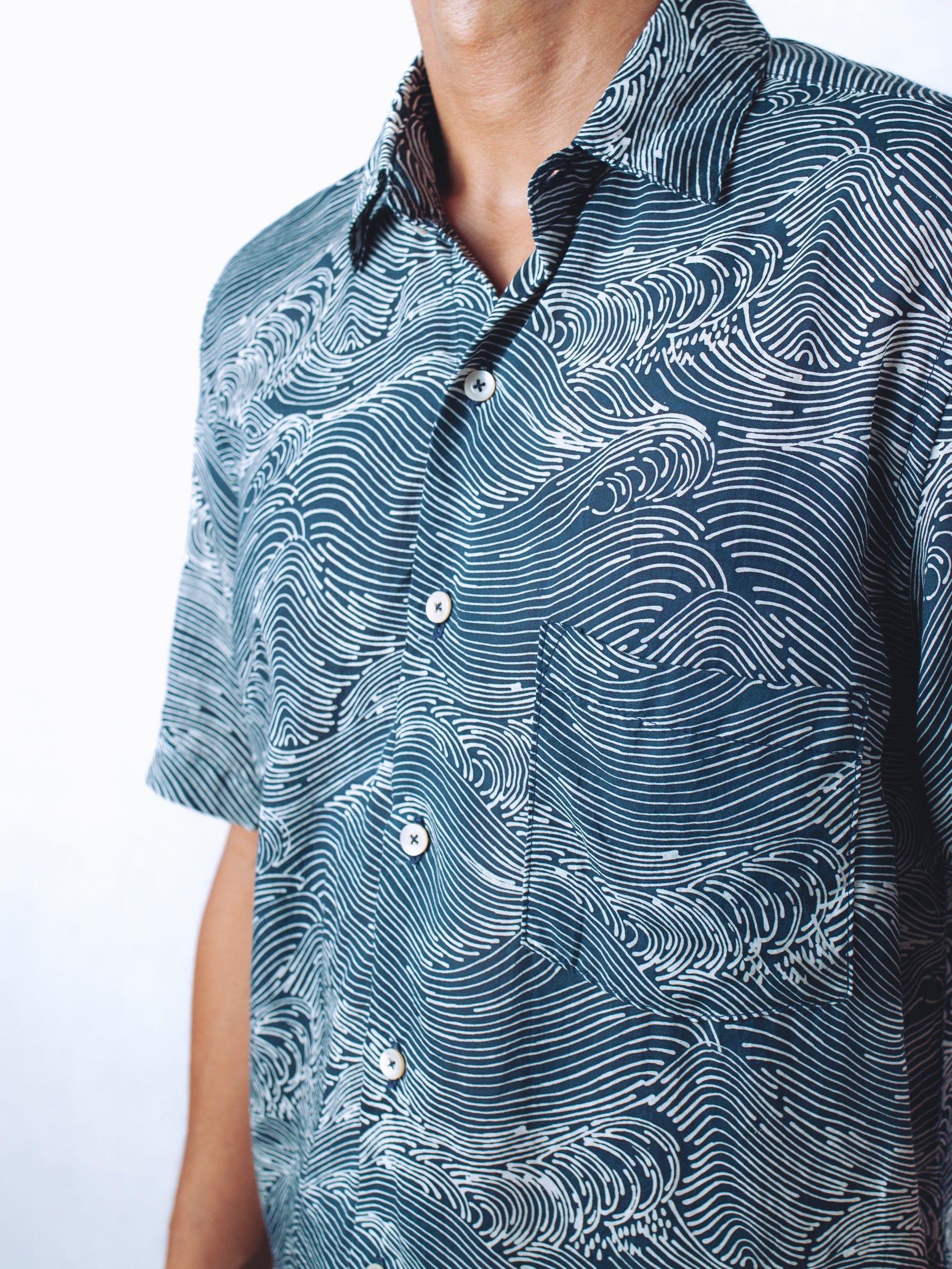 Garis Ombak (“Wave Line”) is part of our Original Edition release, featuring the earliest expression of this wave-inspired batik motif. Each shirt is hand-dyed and sun-dried in small batches, creating subtle variations in tone and pattern.