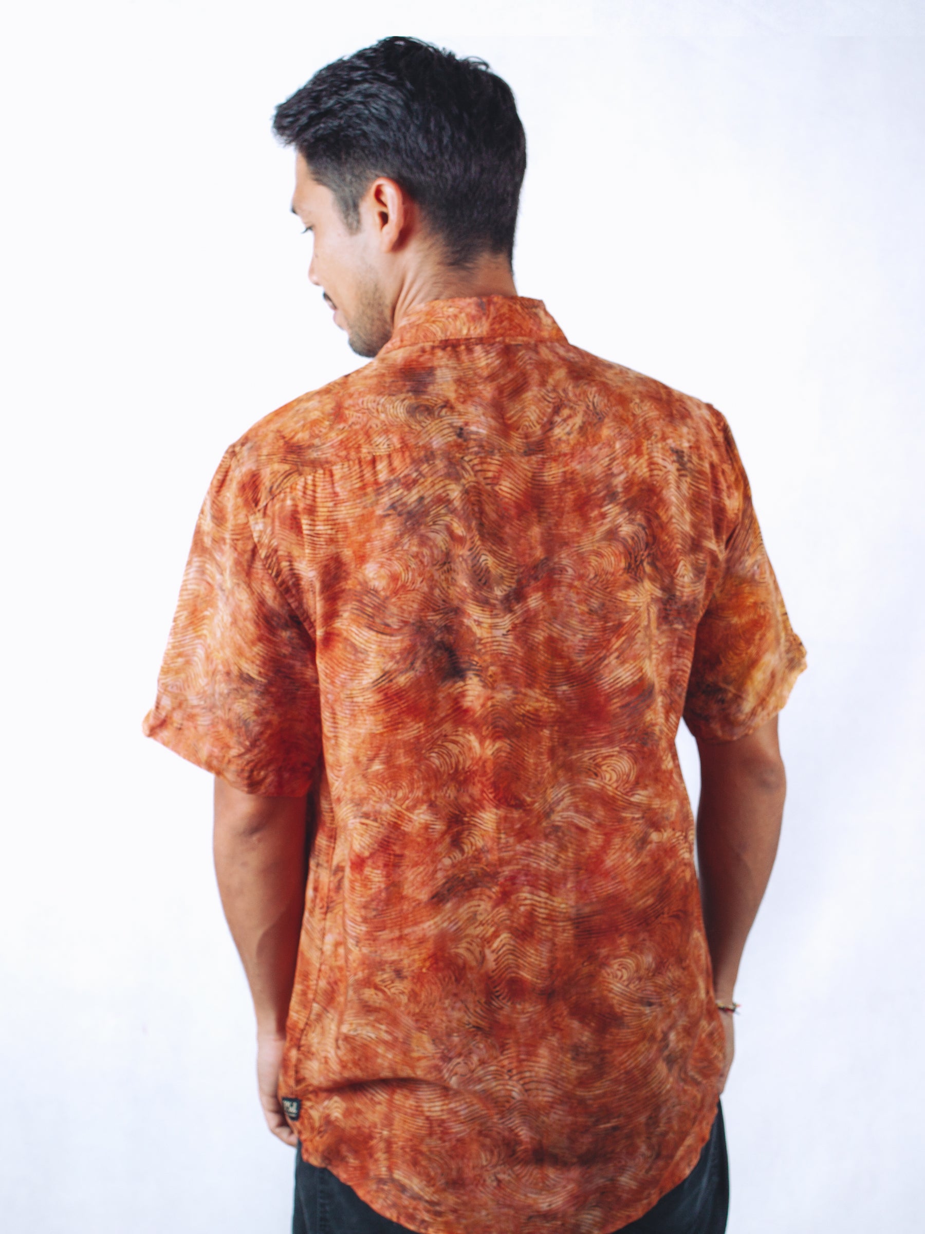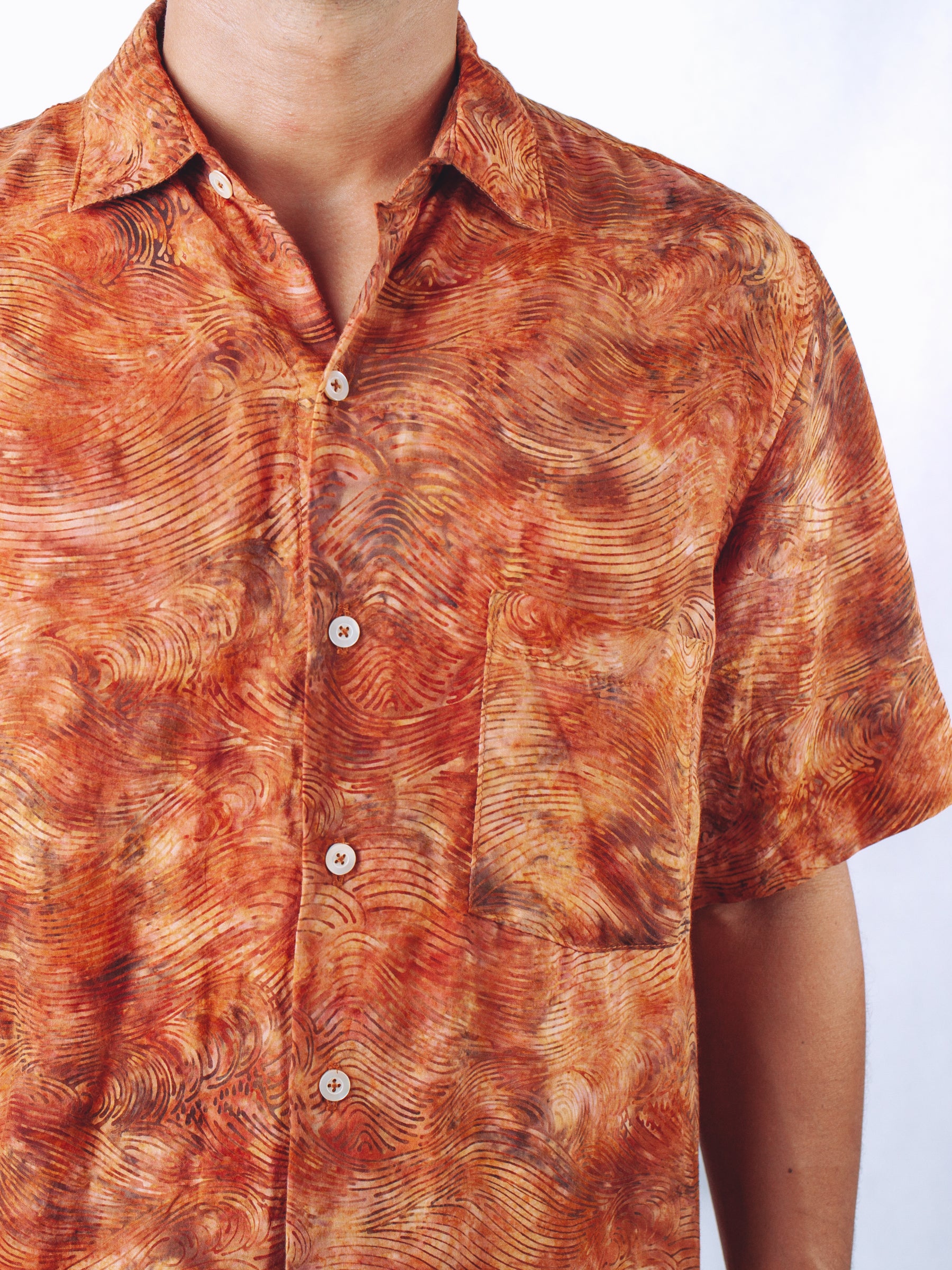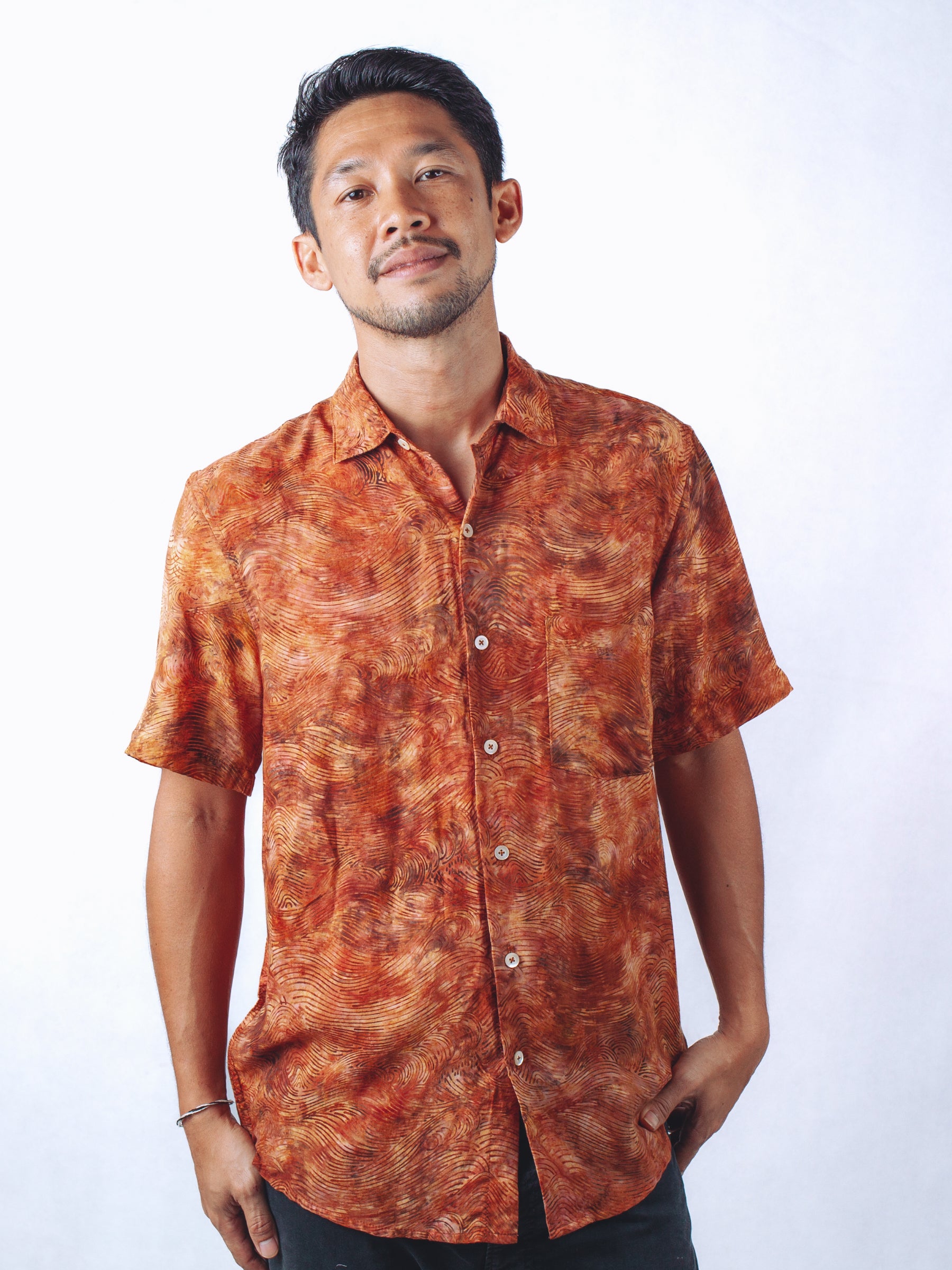 Garis Senja is a batik shirt made using traditional wax-print techniques, creating flowing organic lines with warm, earthy tones and subtle variation. Each piece is hand-printed and hand-dyed, resulting in natural differences that make every shirt unique. Crafted from soft TENCEL™ Lyocell, Garis Senja is lightweight, breathable, and comfortable in warm, humid weather. Designed for effortless everyday wear and travel.